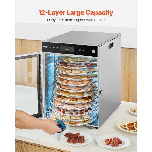 VEVOR Essiccatore con Vassoio Rotante per Alimenti 12 Vassoi in Acciaio Inox, Essiccatore Elettrico per Alimenti 800 W Temperatura Regolabile, Essiccatore a Congelamento per Carne Frutta Verdura