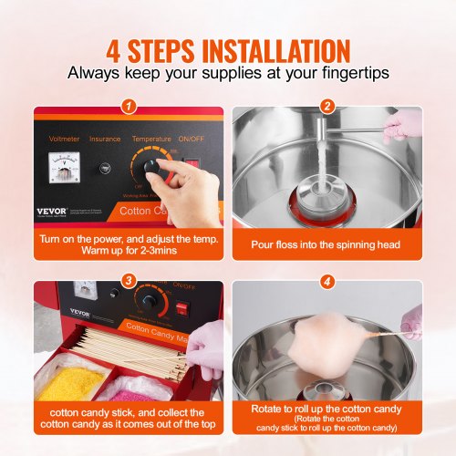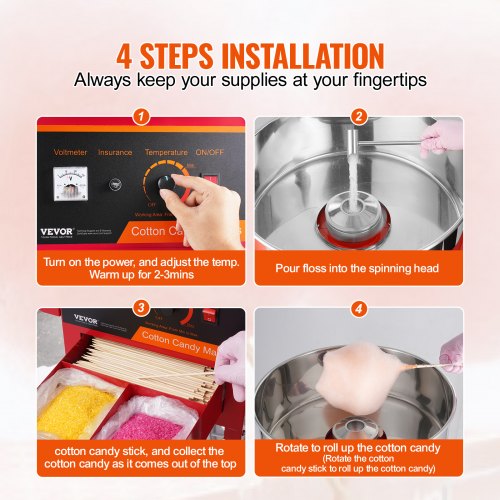 VEVOR Macchina Zucchero Filato Elettrica 1000 W Macchina Zucchero Filato Commerciale, con Ciotola in Acciaio Inossidabile, Paletta per Zucchero, Perfetta per Compleanno Bambini, Feste Famiglia, Rossa