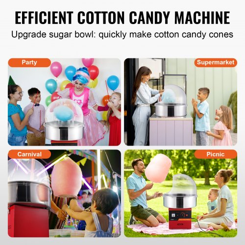 VEVOR Macchina per Zucchero Filato Elettrica da 1000 W, Macchina per Zucchero Filato Commerciale con Coperchio, Ciotola in Acciaio Inox, per Feste, Eventi, Carnevale, Macchina Zucchero Filato