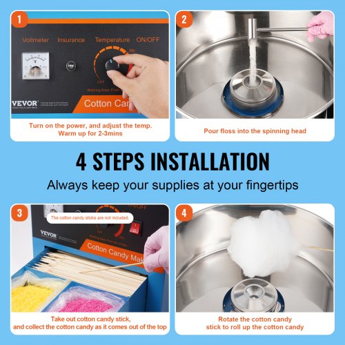 VEVOR Macchina per Zucchero Filato Elettrica, 1000 W, Macchina Zucchero Filato Commerciale con Ciotola in Acciaio Inossidabile e Paletta per Zucchero, Compleanno Bambini Casa, Festa Famiglia, Blu