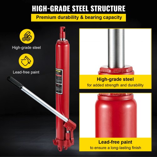 VEVOR Cric idraulico a pistone lungo, capacità 8 tonnellate, con pompa a pistone singolo e base a forcella, raccoglitrice manuale di ciliegie con maniglia, paranco di sollevamento motore, rosso