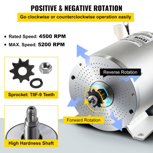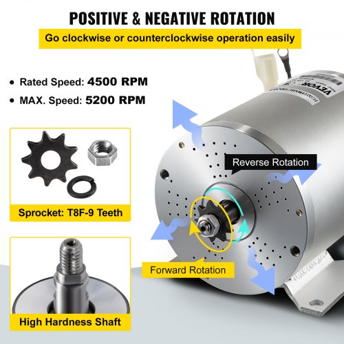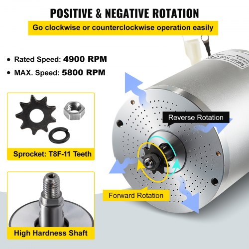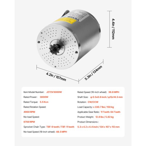 VEVOR Motore Elettrico DC 1800 W, Motore Elettrico per Go-Kart Velocità Rotazione Nominale 4500 giri/min, Motore Elettrico per Moto E-Bike, Scooter Fai da Te Potenza 1800W 134 x 107 mm