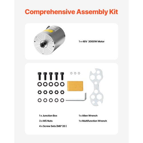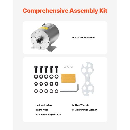 VEVOR Kit Motore Elettrico Senza Spazzole 134 x 107 x 112 mm 3000 W Motore Elettrico 72 V a 4900 Giri/min Motore CC Senza Spazzole, Funziona in Modo Efficiente, per Go Kart, Bici Elettrica, Scooter