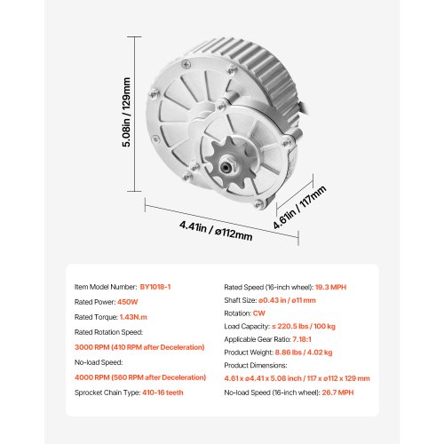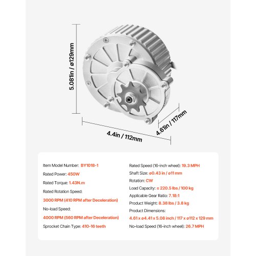VEVOR Kit Motore Elettrico CC con Spazzole 450 W Motore Elettrico 36V 3000 Giri/min con Regolatore di Velocità Aggiornato, Kit Acceleratore con Impugnatura a Rotazione per Bici Elettriche, Scooter