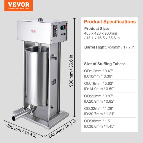 VEVOR Tritacarne Elettrico da 6,35 kg/min Insaccatrice per Salsicce con Lama, Piastra di Macinazione, Macchina per Salsicce, Mobiletto Tritacarne in Acciaio Inox per Affettare, Sminuzzare