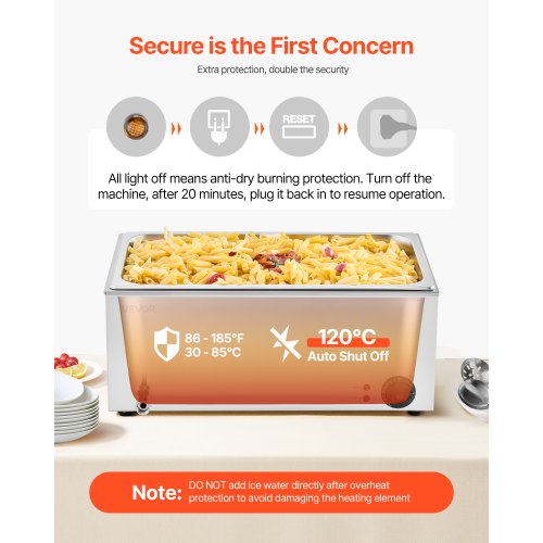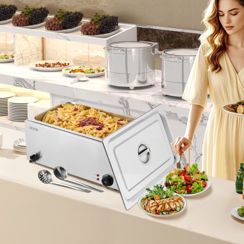 VEVOR Scaldavivande Commerciale da Banco Scaldavivande Elettrico a Vapore Contenitore Dimensione Standard 1200 W in Acciaio Inox Temperatura tra 30 e 80 °C per Catering, Buffet Feste