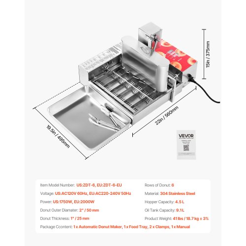 VEVOR Macchina Automatica per Ciambelle, Attrezzatura Commerciale per Ciambelle a 6 File, Macchina in Acciaio Inox Intelligente per Ciambelle Elettrica ad Alta Potenza da 360 Pezzi Ogni Ora