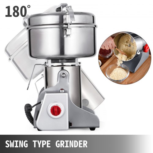 VEVOR 2000g Mulino Elettrico per Cereali, Macina Spezie Commerciale 3400 W, Macchina per Polverizzazione in Acciaio Inossidabile, per Cereali Secchi, Spezie, Caffè, Mais, Pepe, Tipo Oscillante