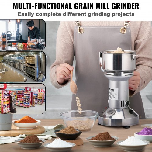 VEVOR 550g Mulino Elettrico per Cereali, Macina Spezie Commerciale Alta Velocità 2000 W, Macchina Polverizzazione in Acciaio Inox, per Cereali Secchi, Spezie, Caffè, Mais, Pepe, Tipo Oscillante