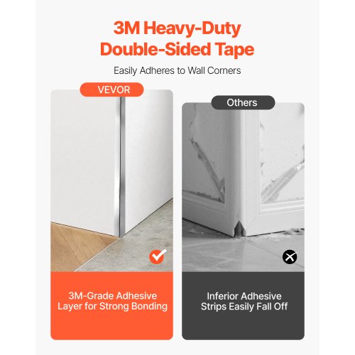 VEVOR Paraspigoli in Acciaio Inox 50 x 50 x 1217 mm, Confezione da 12 pezzi, Profilo Angolare per Muro a 90° con Nastro Adesivo, Protezione dagli Urti per Pareti di Soggiorno, Ufficio
