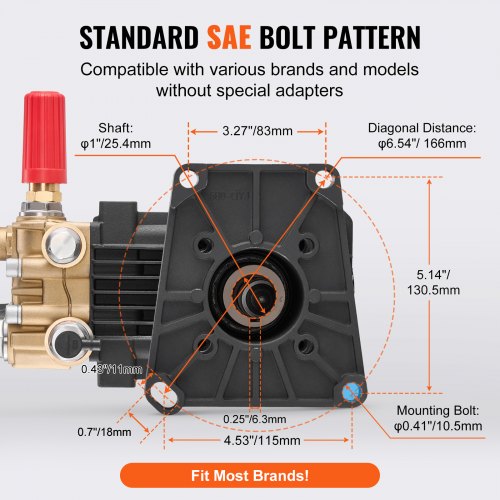 VEVOR Pompa per Idropulitrice, Albero Orizzontale 19,05 mm, 3400 PSI, 2,5 GPM, Kit di Pompe di Ricambio per Idropulitrice per Lavaggio Compatibile con Honda, Simpson, Briggs & Stratton, Craftsman