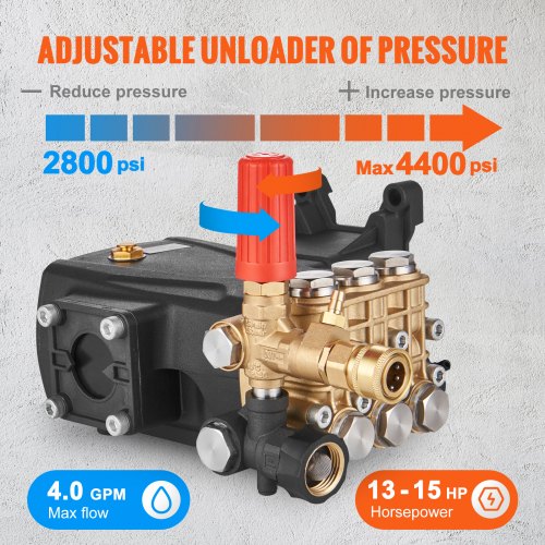 VEVOR Pompa per Idropulitrice Albero Diametro 25,4 mm, Pistone Orizzontale a Tripla Camera, 4400 PSI, Portata 4 GPM, Kit di Pompe di Ricambio per Idropulitrice Lavapezzi