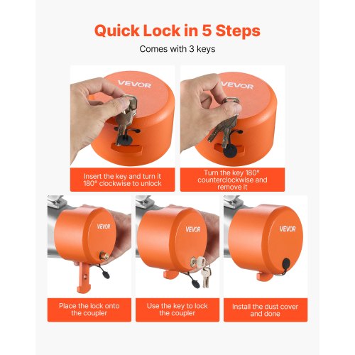 VEVOR Lucchetto per Rimorchio, per Attacchi da 47,5/50,6/58,6 mm, Lucchetto per Gancio di Traino con 4 Chiavi, Resistente allo Scasso e Alla Corrosione, Compatibile Giunto a Sfera a Bordo Piatto