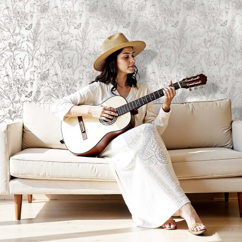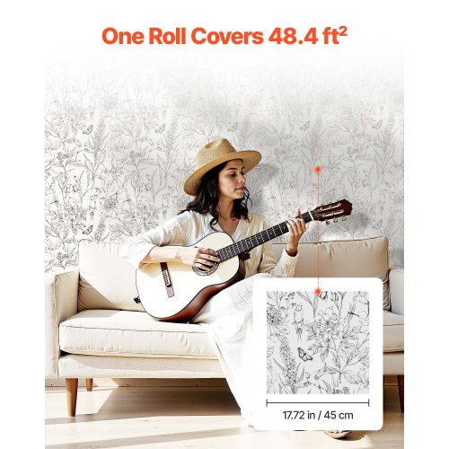 VEVOR Carta da Parati Adesiva Decorativa 45 cm x 10 m, Rotolo Carta da Parati Autoadesiva in Vinile, Impermeabile, per Rivestimenti Murali, Camere da Letto, Cucine, Uffici, Floreale Botanico Bianco