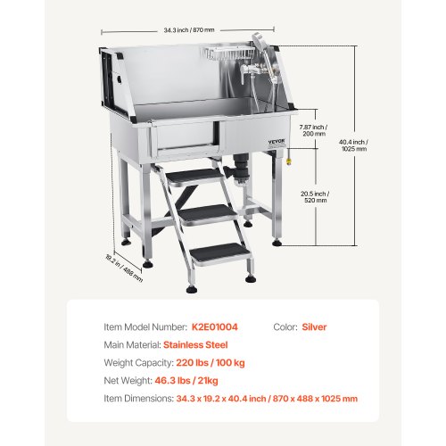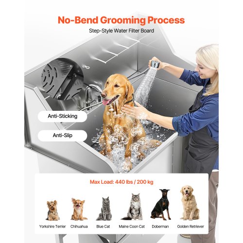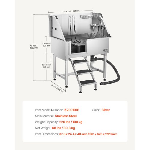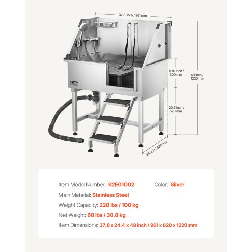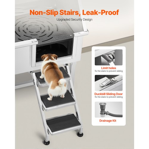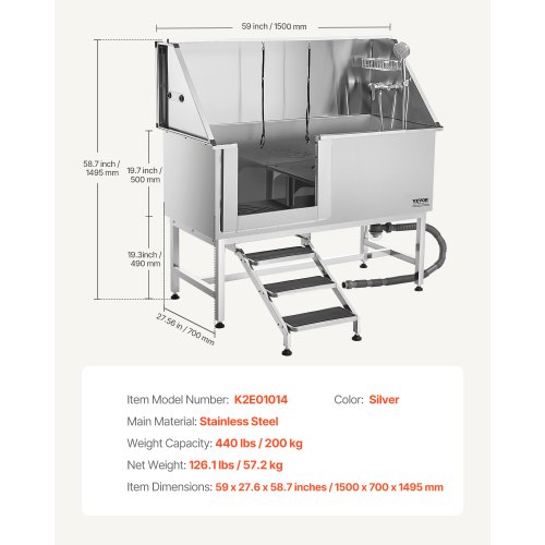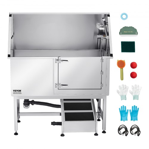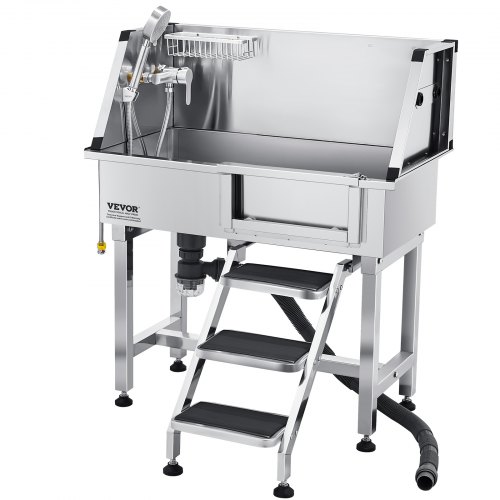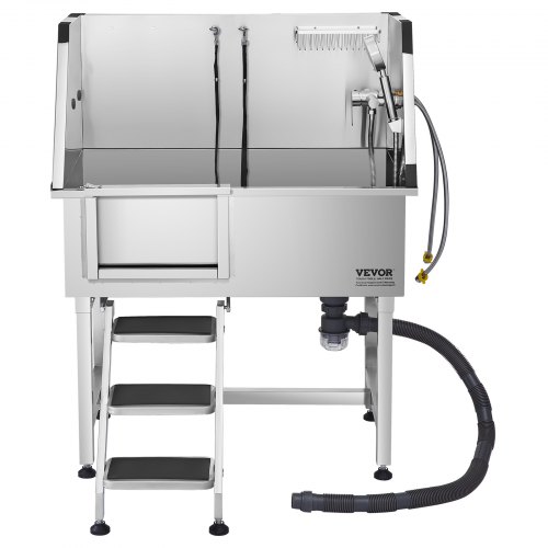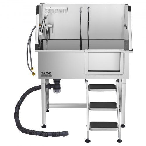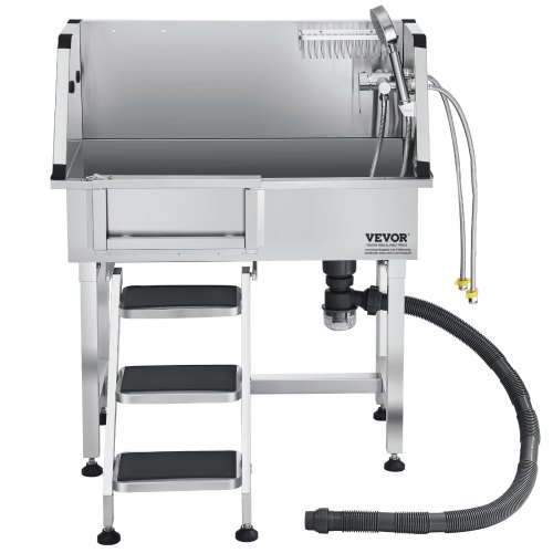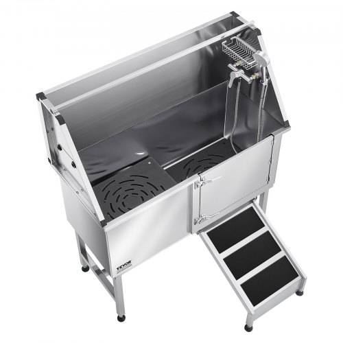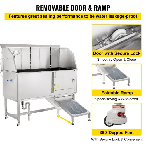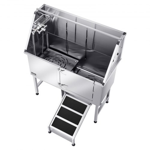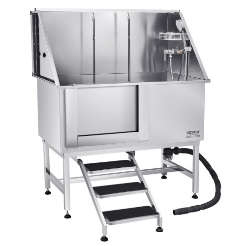 VEVOR Vasca da Bagno con Porta Scorrevole per Animali Domestici in Acciaio Inox Capacità Carico Max. da 300kg, Vasca da Bagno per Animali Lunghezza Massima di 149,9 cm con Porta Scorrevole Peso 75kg