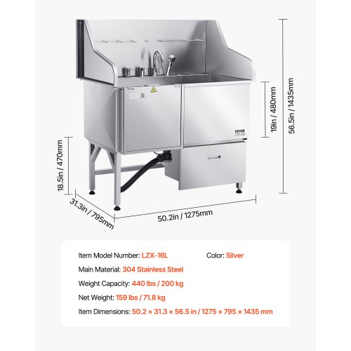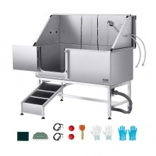 VEVOR Stazione di Lavaggio per Cani con Sollevamento Elettrico, Vasca per Toelettatura per Animali Domestici in Acciaio Inox da 127 cm con Filtro per Acqua, per Più Animali Domestici, Porta Sinistra