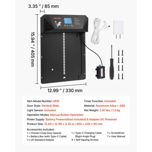 VEVOR Apriporta Automatica per Pollaio con Timer Sensore di Luce Impermeabile IP44 20-60°C, Porta per Pollai in Alluminio con Telecomando Schermo LCD 4 Modalità di Apertura Dimensioni Porta 210x260mm