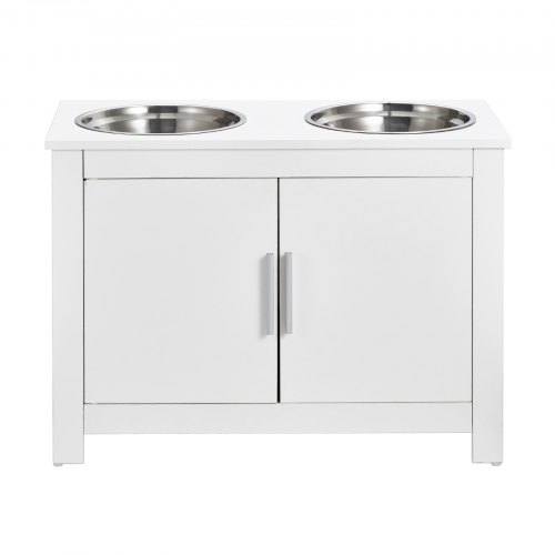 VEVOR Stazione di Alimentazione per Animali Domestici con 2 Ciotole in Acciaio Inox Rialzate per Cani, Mobili Porta Alimenti per Animali Contenitore per Cibo di Cani Mobiletto Portaoggetti