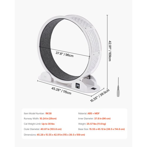 VEVOR Ruota per Esercizi per Gatti con Contapassi, 1038 mm Ruota per Correre con Freno Pista in Moquette per Gatti da Interno Sotto 13,6 kg Attrezzo per Esercizi per Gatti per Animali Domestici Bianco