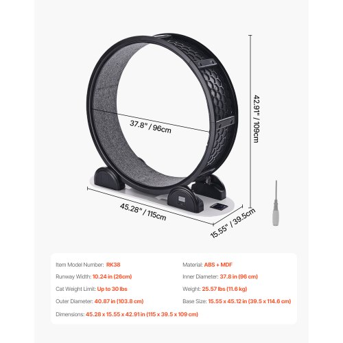 VEVOR Ruota per Esercizi per Gatti, Ruota per Correre con Freno e Pista in Moquette, Contapassi, Tapis Roulant Silenzioso per Gatti Sotto 13,6 kg, Attrezzo Fitness per Animali Domestici, 1038 mm Nero