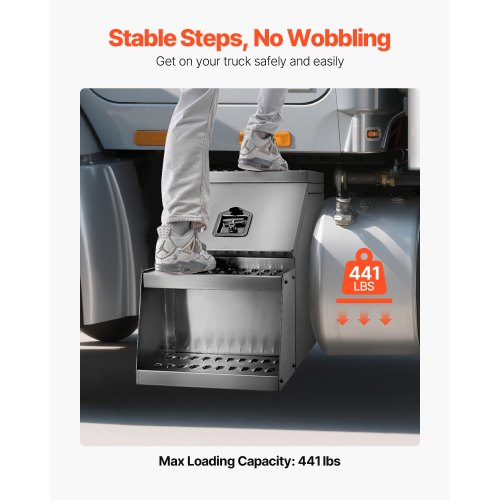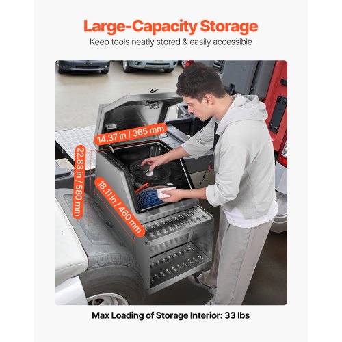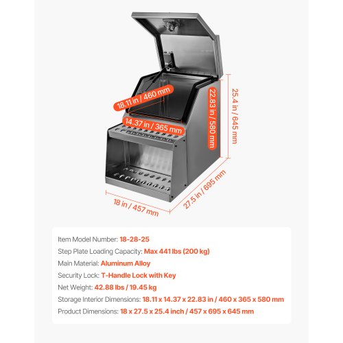 VEVOR Cassetta Portautensili a Scala per Camion, 457 x 695 x 645 mm in Alluminio, Montaggio Laterale, Cassetta Impermeabile con Maniglia a T e Chiavi per Semirimorchi, Rimorchi a Pianale