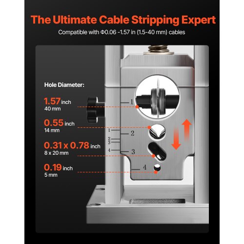 VEVOR Macchina Spellacavi Elettrica Potenza 1500W in Lega di Alluminio Calibro tra 1,5-40mm, Macchinetta Spellafili Elettrica per Cablaggio Cavi Elettrici 58 x 39 x 49cm, Macchina Elettrica Spellacavi