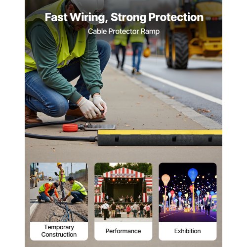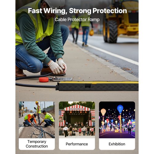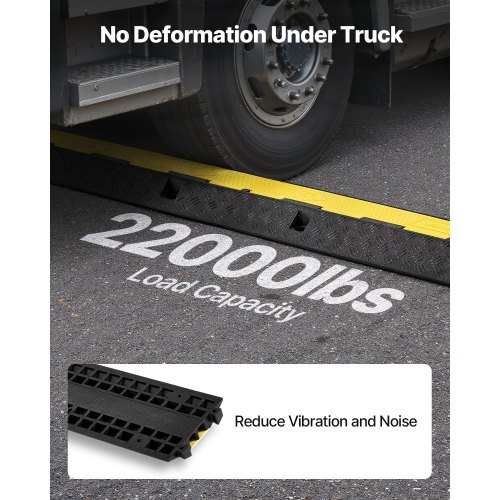 VEVOR Passacavo in Gomma per Protezione dei Cavi Tubi a Pavimento 5 Canali 3,3 x 3,05 cm, Rampa Passacavo Modulare Impermeabile Carico Max. 10000 kg, Protezione dei Cavi Nero Giallo 114,5 x 80 x 5 cm