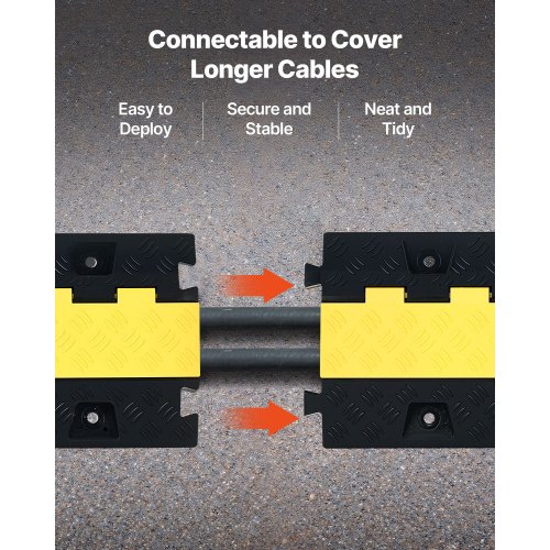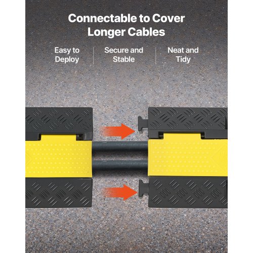 VEVOR Passacavo TPU TPR per Protezione dei Cavi Tubi a Pavimento 2 Canali 5 pz 3,05 x 2,79 cm, Rampa Passacavo Modulare a Pavimento per Cavi Impermeabile Carico Max. 10000kg, Rampa Stradale 2 Canali 91,8x25x4.3 cm
