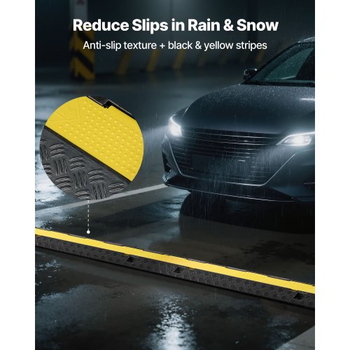 VEVOR Passacavo in Gomma per Protezione dei Cavi Dosatore Velocità 183x30x4,5 cm, 2 Canali 3 x 2 cm, Rampa Passacavo Modulare a Pavimento per Cavi Impermeabile Carico Max. 10000 kg, Protezione dei Cavi Nero Giallo