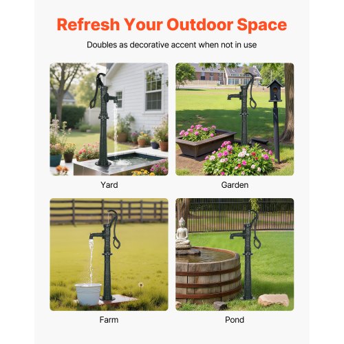 VEVOR Pompa dell'Acqua Manuale in Stile Retrò, Pompa a Mano a Colore Nero in Ghisa da Giardino Esterno, Pompa dell'Acqua Classica in Stile Vintage, Utilizzata in Stagni, Cortili e Giardini Familiari