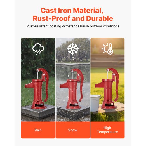 VEVOR Pompa Manuale per Pozzo, Sollevamento Massimo di 7,6 m, Pompa Manuale per Acqua in Ghisa Antica, Attacco NPT, Facile Installazione, Vecchio Stile per Giardino Esterno, Stagno, Rosso