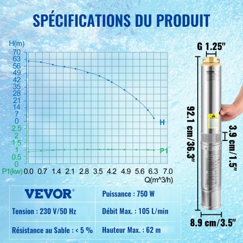VEVOR Pompa Solare per Piscina Motore da 500 W 75 GPM, Prevalenza max. 14,9m 48V Controller MPPT Cavo di Sicurezza 3 m, Adatta per Parchi Acquatici Sotterranei Piscine