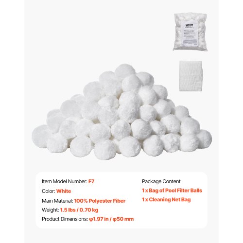 VEVOR Palline Filtranti per Piscina per Filtro a Sabbia, 0,68 kg, Materiale Filtrante in Fibra di Poliestere Bianco Riutilizzabile con Sacchetto Lavaggio, per Piscina Acquario Vasca Piscina Terra