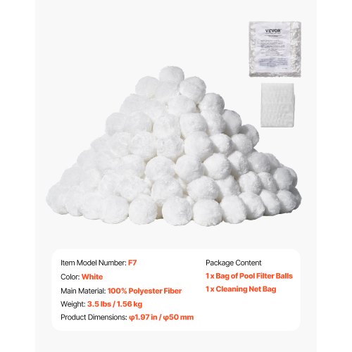 VEVOR Palline Filtranti per Piscina per Filtro a Sabbia, 2,09 kg, Materiale Filtrante in Fibra di Poliestere Bianco Riutilizzabile con Sacchetto Lavaggio, per Piscina Acquario Vasca Piscina Terra