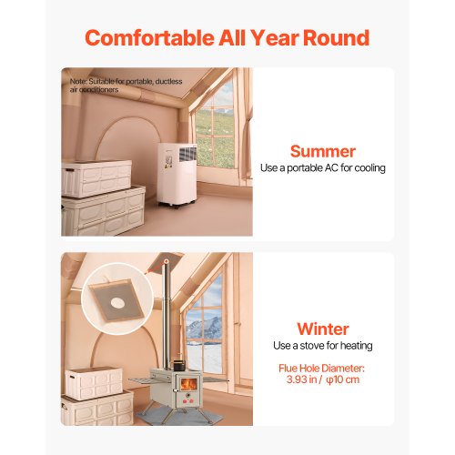 VEVOR Tenda da Esterno per Campeggio Capienza ca. 4-6 Persone, Tenda Invernale Portatile con Foro per Stufa, Tessuto Impermeabile Rivestito in PU da 2500 mm, Riparo Leggero, Taglia L
