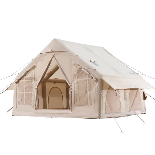 VEVOR Tende Gonfiabili per Campeggio, Tenda Gonfiabile per 4-6 Persone con Pompa a Mano, Tenda da Glamping 300D Oxford 4 Stagioni con Jack per Stufa, 2 Porte e 4 Finestre a Rete, Borsa Portaoggetti
