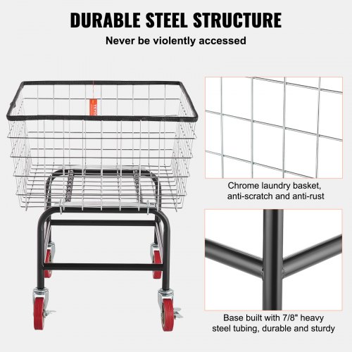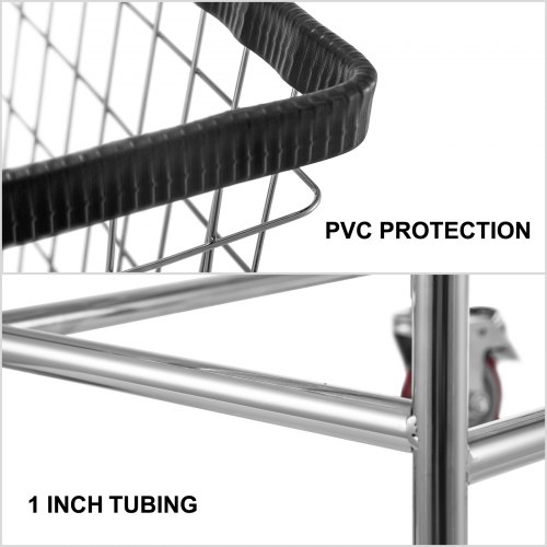VEVOR Carrello portabiancheria in filo metallico con ruote, Carrello portabiancheria in filo metallico commerciale da 35''x15,7''x22'', Telaio in acciaio con finitura cromata