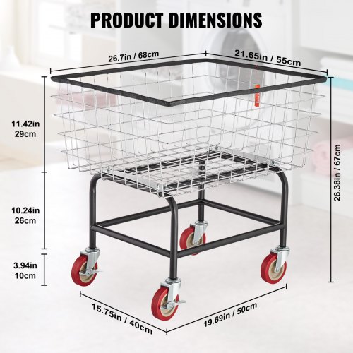 VEVOR Carrello Portabiancheria in Filo Metallico, Cesto a Rotelle Portabiancheria Carrello Portabiancheria Commerciale in Filo Metallico Cestino 678 x 550 x 290 mm, Capienza ca. 100L, per Lavanderia