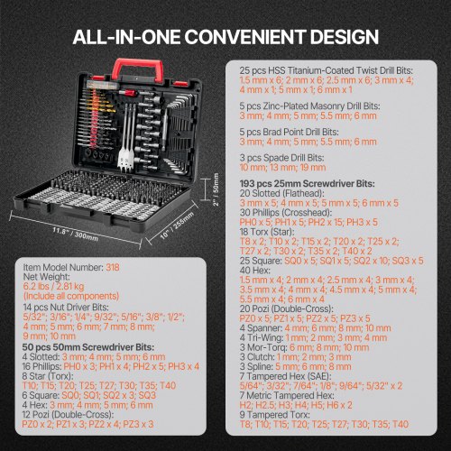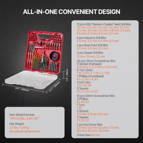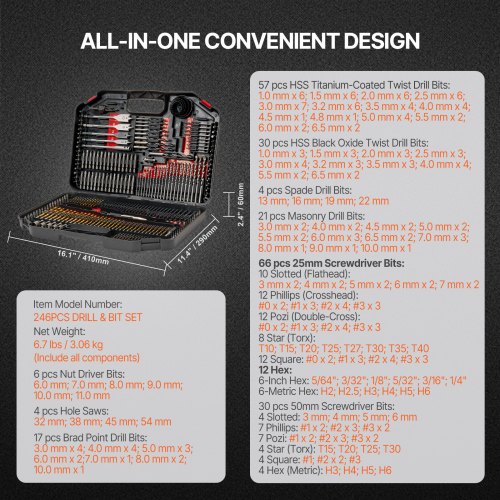 VEVOR Set di Punte da Trapano 246 Pezzi, Set di Punte da Trapano e Cacciavite, Set di Punte da Cacciavite Adatte per Foratura di Metallo, Kit Combinato Assortiti in Custodia per Trasporto Organizzata