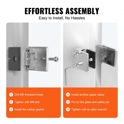 VEVOR Morsetto per Vetro Temperato 8-12 mm, Staffa per Ringhiera in Vetro Quadrata 4 Pezzi, Morsetto per Montaggio Vetro Acciaio Inossidabile 304, Staffa per Mensola in Vetro Spesso 3 mm