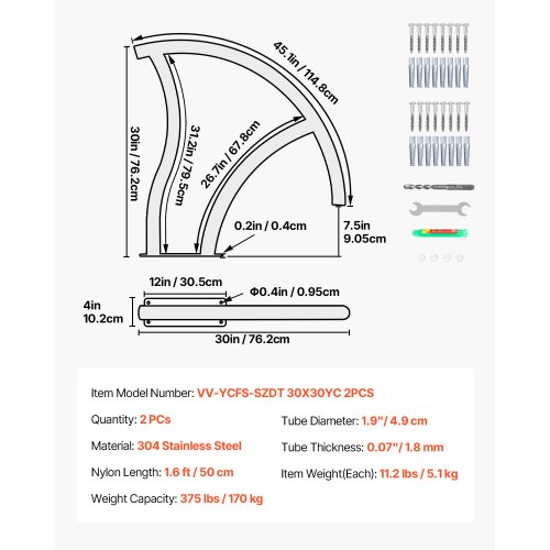 VEVOR Corrimano per Piscina, Confezione 2, Ringhiera per Piscina 762 x 762 mm Acciaio Inossidabile con Piastra di Base per Piscine Interne Esterne, Ringhiera di Sicurezza per Piscina, Bianco Argento