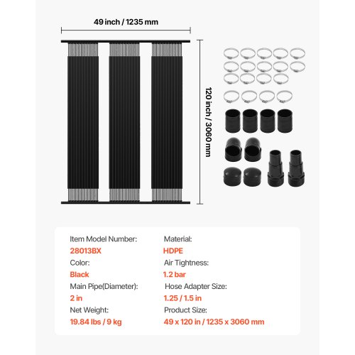 VEVOR Pannello Solare per Piscina in HDPE, 1235 x 3100 mm 1 Pezzo, Durevole Resistente Intemperie, con Accessori Completi, Aumenta Temperatura dell'Acqua, Piscina Fuori Terra e Interrata