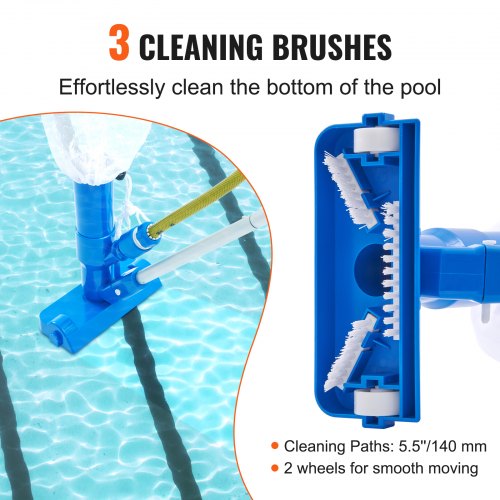 VEVOR Aspirapolvere Pulizia per Piscina con 3 Spazzole Aste a 6 Sezioni Lunghezza 142,5cm ABS PP per Piscina Fuori Terra SPA Vasca Idromassaggio, Pulitore per Piscina Domestica in Lega di Alluminio
