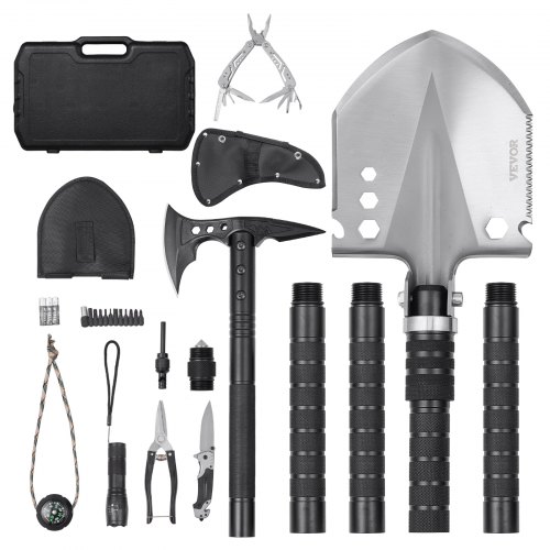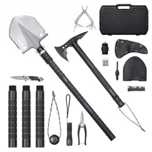 VEVOR Kit Attrezzatura da Esterno Pala con Ascia, Vanga Pieghevole da Campeggio con Ascia, Combinazione Pala-ascia in Acciaio Inox, Attrezzatura Multifunzionale per Campeggio Escursionismo, Nero