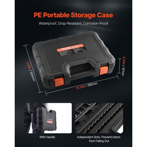 VEVOR Set di Bussole 107 Pezzi SAE e Metriche, Esagonali/Torx/Torx Esterne, Acciaio Legato S2 e Acciaio Cr-V, Attacchi 0,63/0,95/1,27 cm con Custodia di Stoccaggio Migliorata, Uso Manuale