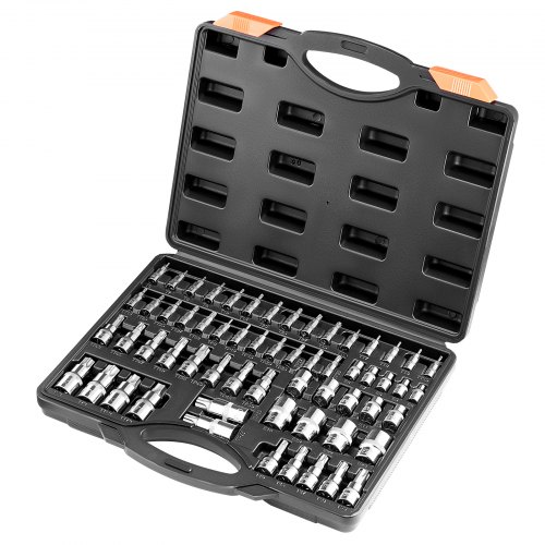 VEVOR Set di Bussole per Punta Torx Esterne, 60 Pezzi T6 a T70, TT6 a TT70, TP8 a TP60, E4 a E24, Acciaio Legato S2 e Cr-V, Attacchi 0,63/0,95/1,27 cm, con Custodia Stoccaggio, Manuale