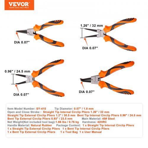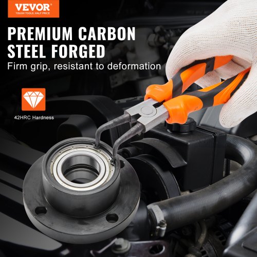 VEVOR Set di Pinze 4 Pezzi per Anelli Elastici Esterni Interni in Acciaio al Carbonio, Set di Pinze in Acciaio 45# Durezza 42HRC 4 Pezzi con Borsetta Portatile da Officina Garage per Lavori Meccanici