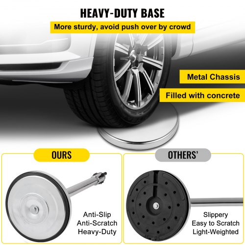 VEVOR Barriera a Palo, Confezione da 8, Supporto per Barriera in Acciaio al Carbonio per Controllo della Folla con 8 Cinghie Retrattili e 2 Supporti per Cartelli, con Base Ricaricabile per Mostre