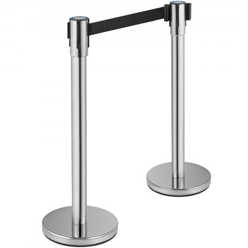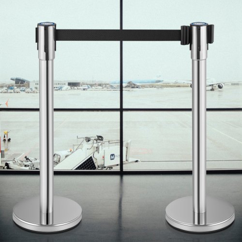 VEVOR Barriere Retrattili per Il Controllo della Folla e La Coda, 2 Pz Colonnine Segnapercorso con Nastro Nero per Dividere I Corvi in Banche, Aeroporti, Stadi, Luoghi di Divertimento e Altri Luoghi