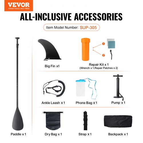 VEVOR Stand Up Paddle Gonfiabile, 3352,8 x 838,2 x 152,4 mm PVC SUP Paddleboard con Accessori per Tavola, Borsa per Telefono, Pompa, Pagaia, Kit di Riparazione, Zaino, Set Paddle